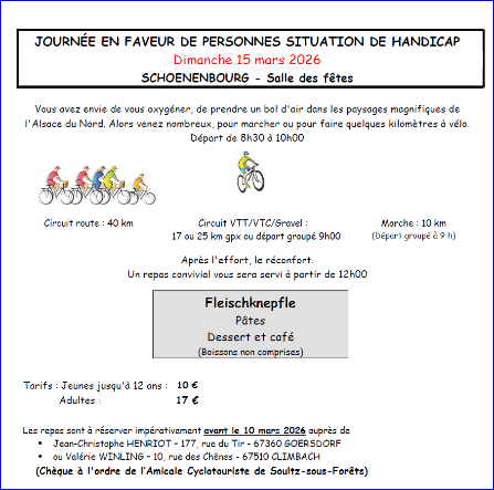 Pour les membres de Lembach Cyclotourisme, réservation groupée auprès du président.